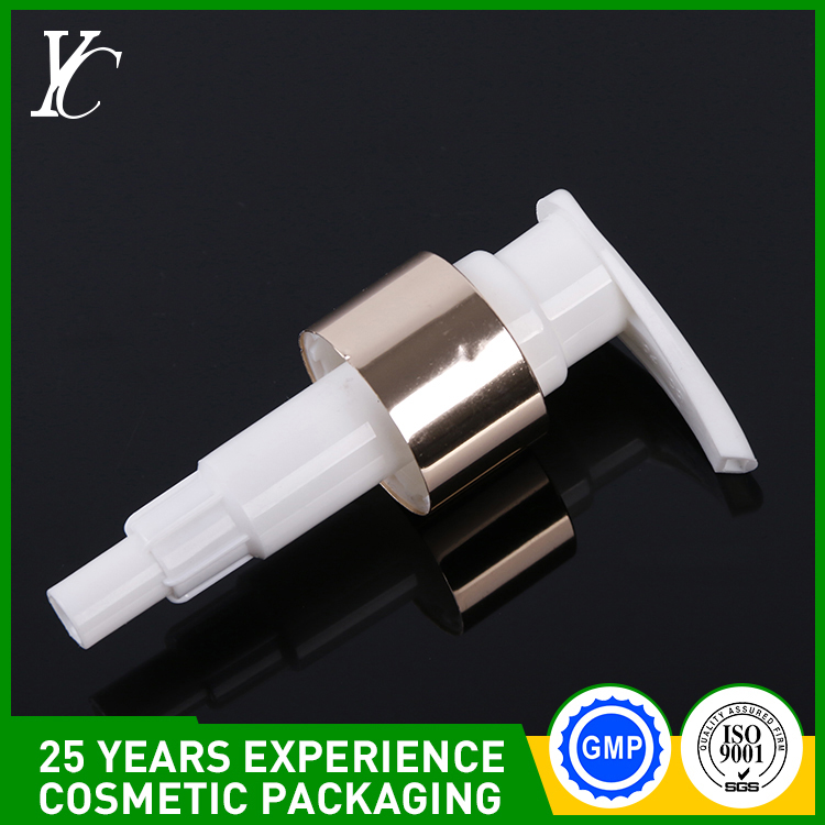 分配器的组成较为复杂,一般包括:防尘罩、按头、垫片、活塞、弹簧、阀门、瓶盖、泵体、吸管、阀门玻璃珠等。由于一套泵头涉及到的模具较多,且订量较大,起订量1万—2万,供货期限确认样后25天—30天,一般没有现货。分配器客户极少自己开模,要的模具交多,费用较高。套电化铝圈的化妆品泵头是其中特殊的一种,由于其带有金属光泽,色泽鲜艳,常用于高档化妆品包装材料。